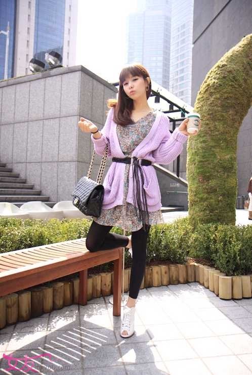 高腰连衣裙搭配针织衫穿起来超赞