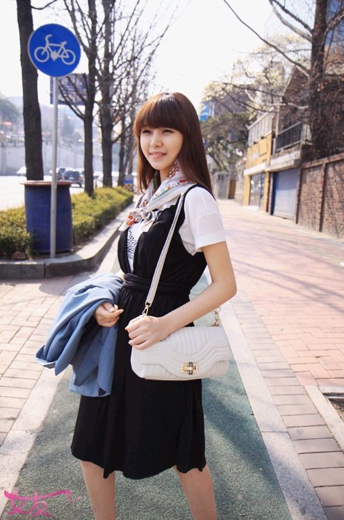 T恤外搭黑色吊带连衣裙,让你更有女人味